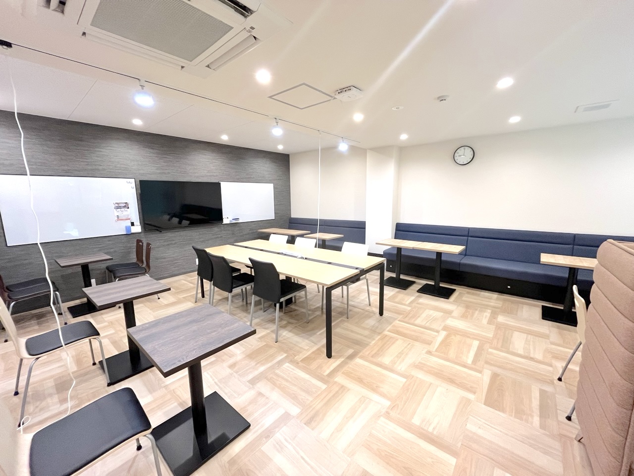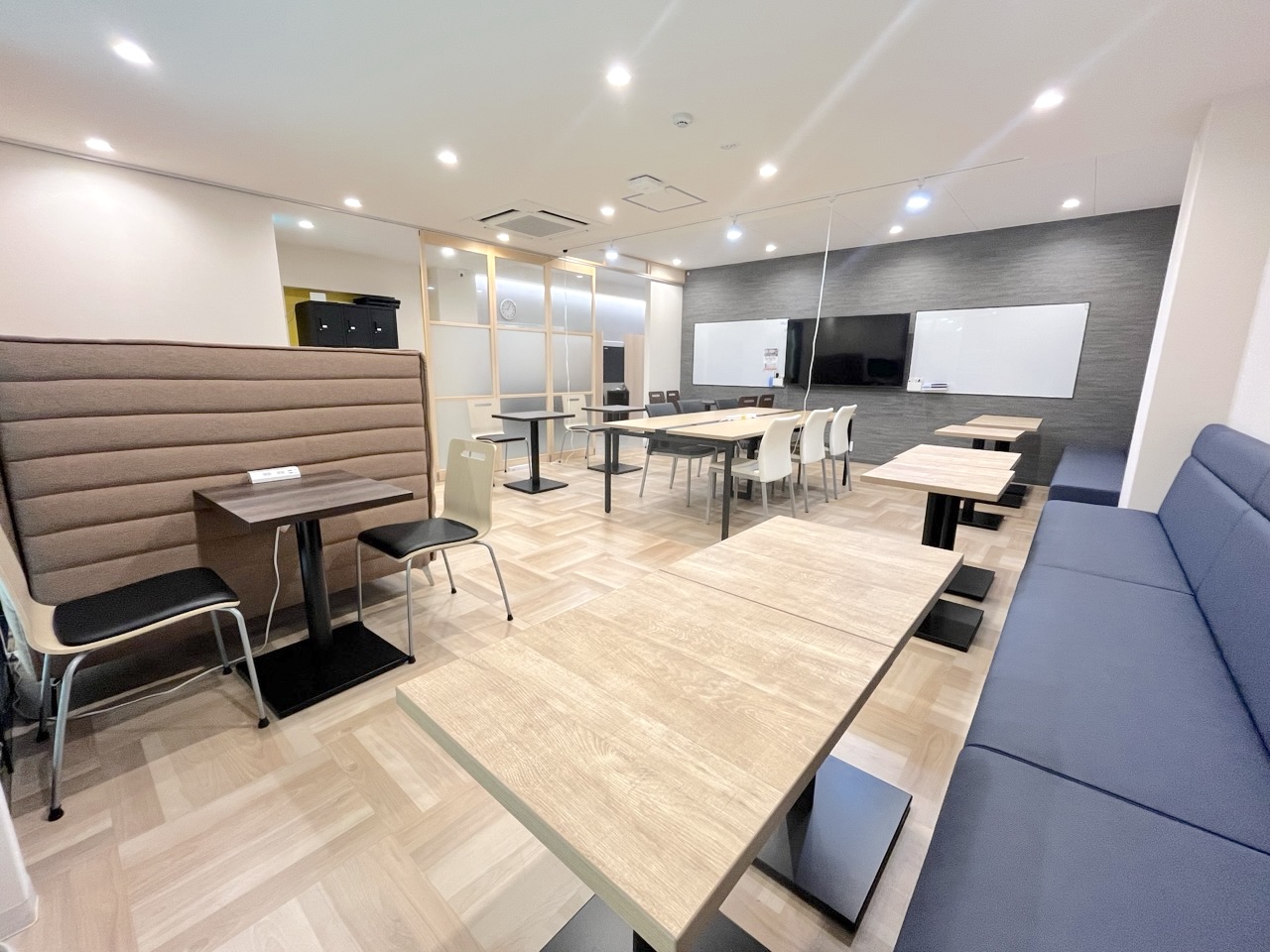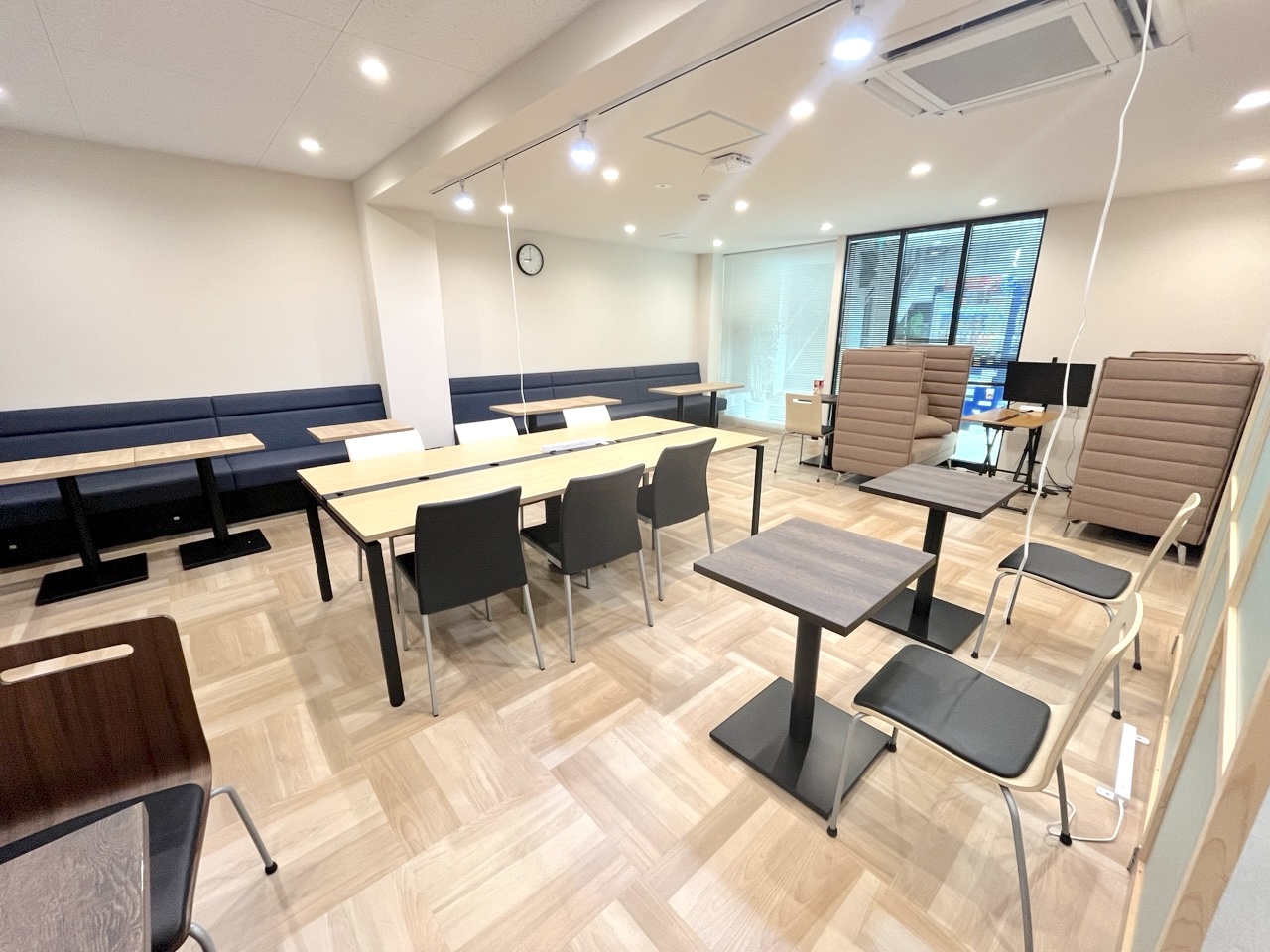 コワーキングスペースでは、共同スペース、テレワークブース、半個室ブースがご利用いただけます。高速Wi-Fiも完備しております。