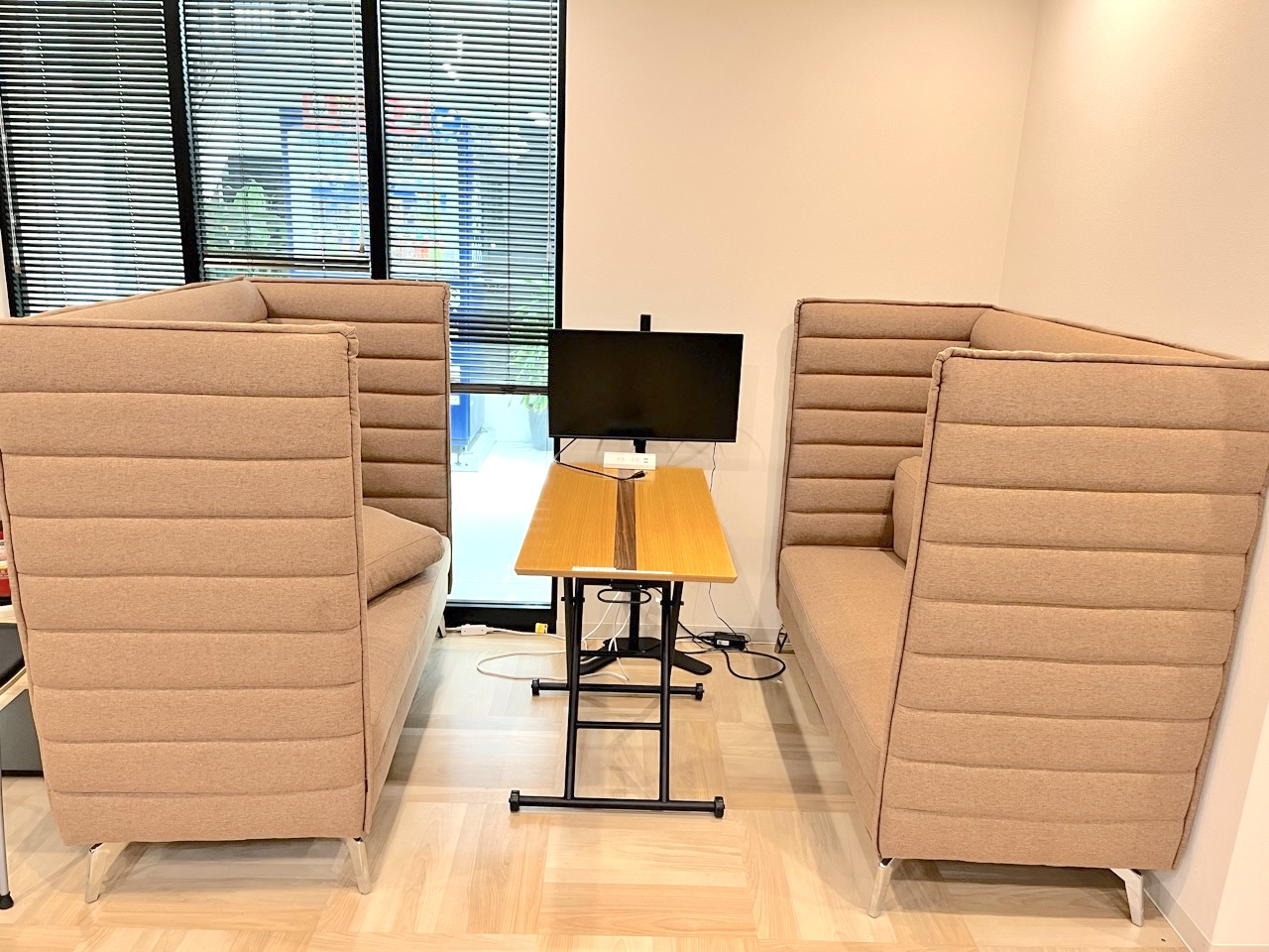 基本的にどのスペースでビデオ会議されても構いません。ビデオ会議する場合は、イヤホン使用をお願いいたします。