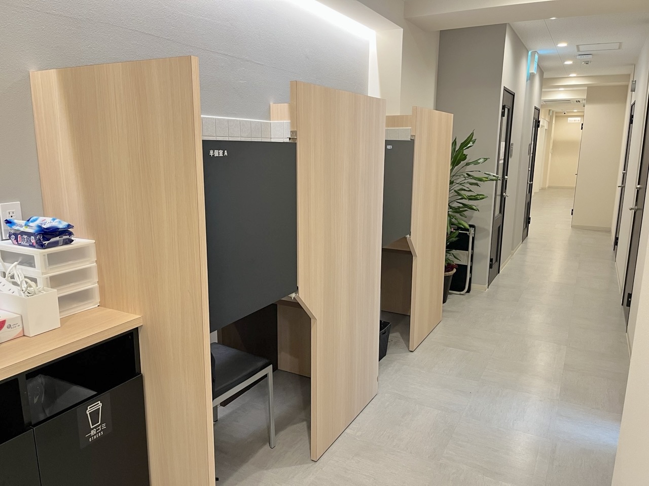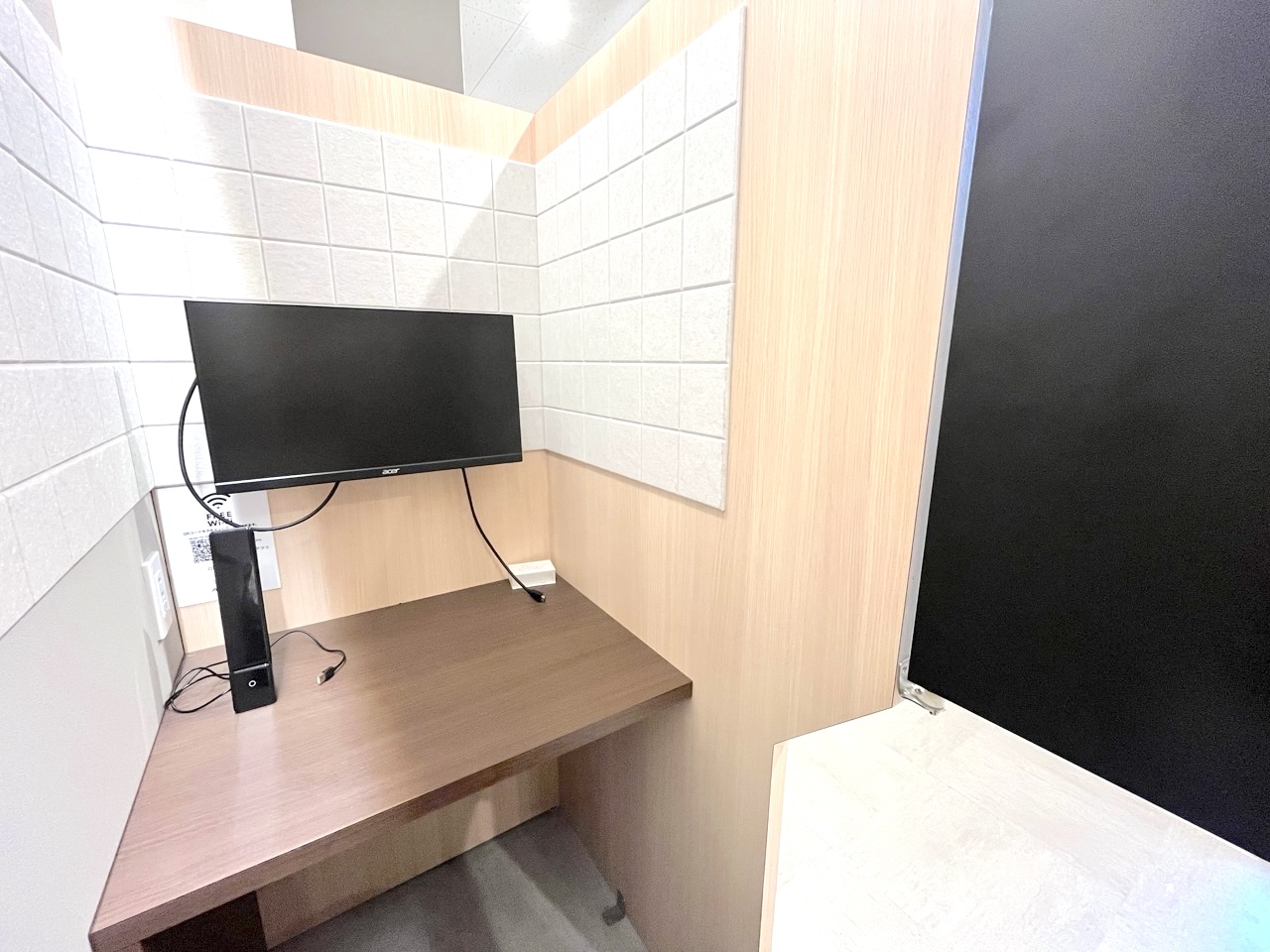 テレワークブースは2室あり、予約も可能です。予約が入っていない時間はコワーキングスペース利用者もお使いいただけます。